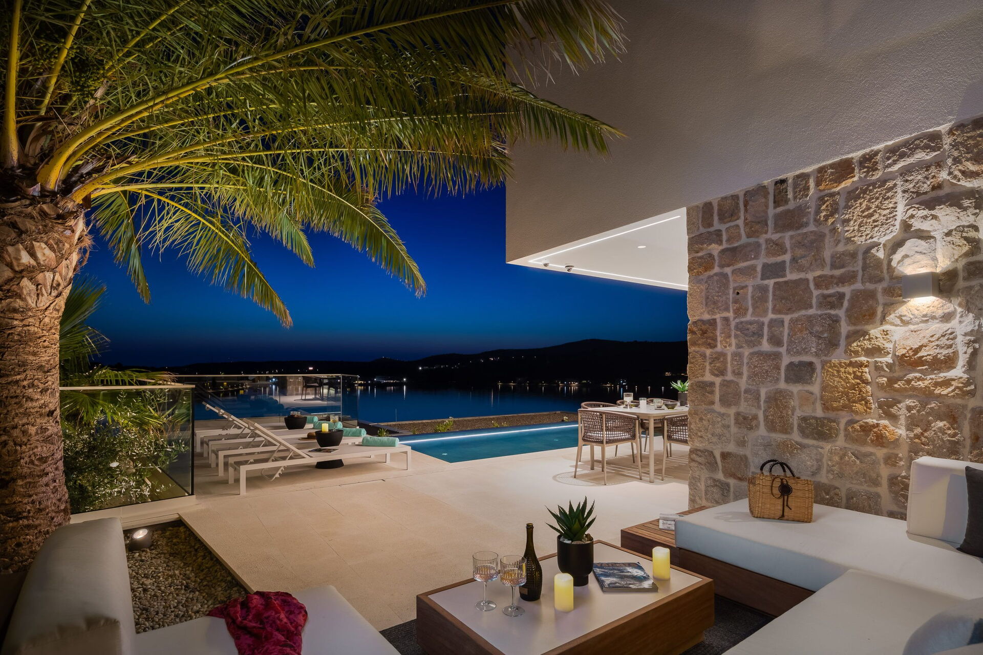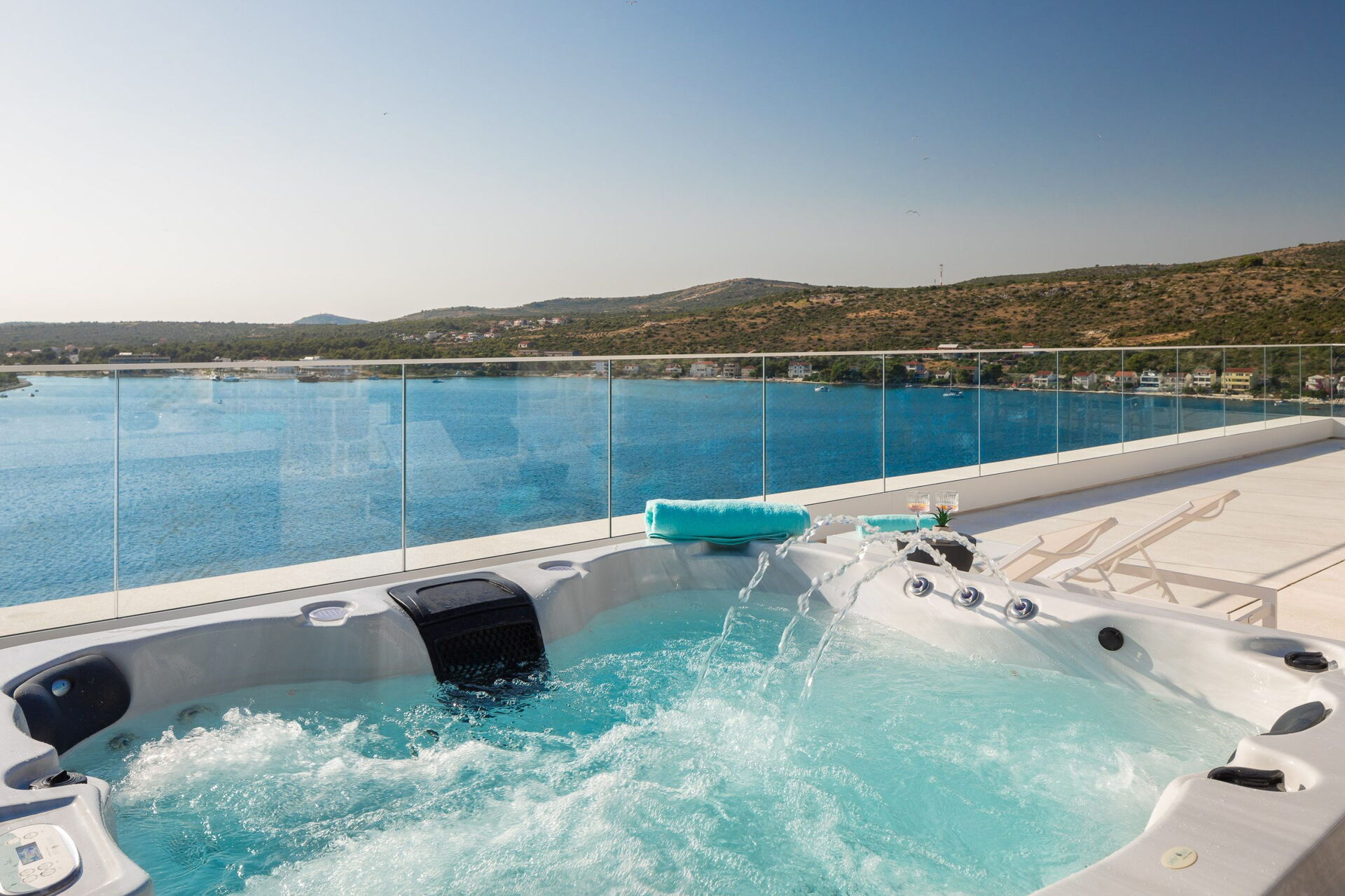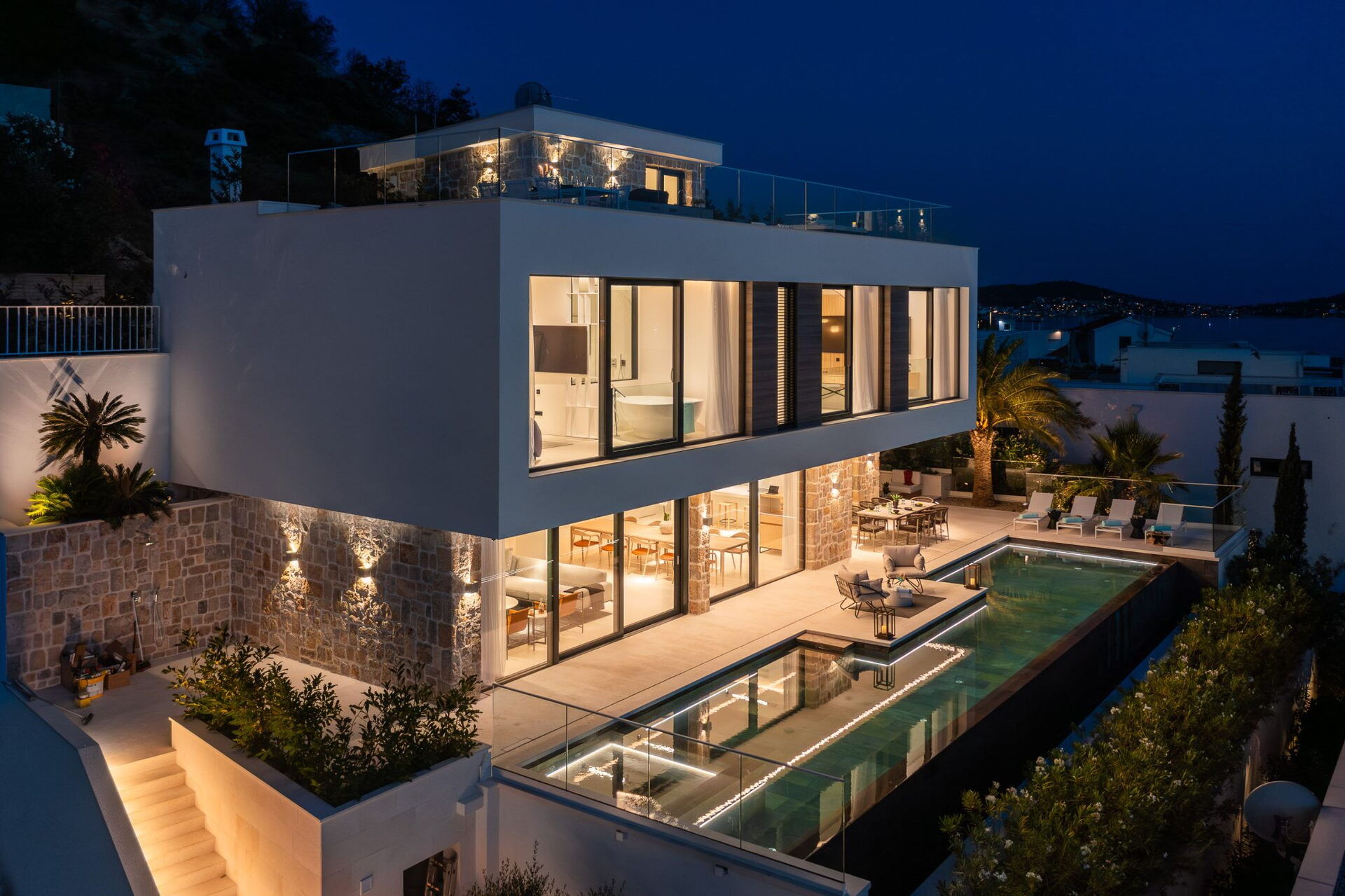 Huset er fordelt på to etager, har en fantastisk udsigt og er udstyret med alle moderne faciliteter. Med sine 3 soveværelser og et lyst, elegant interiør kan feriehuset komfortabelt rumme op til 6/8 personer. Ejendommen tilbyder mange udendørs fællesområder med naturskøn udsigt, hvor gæsterne kan tilbringe tid sammen med familie eller venner. Slap af og nyd et måltid på tagterrassen, som har udendørs køkken, grill og boblebad. Nyd solen i Kroatien ved den opvarmede infinity-pool med havudsigt.