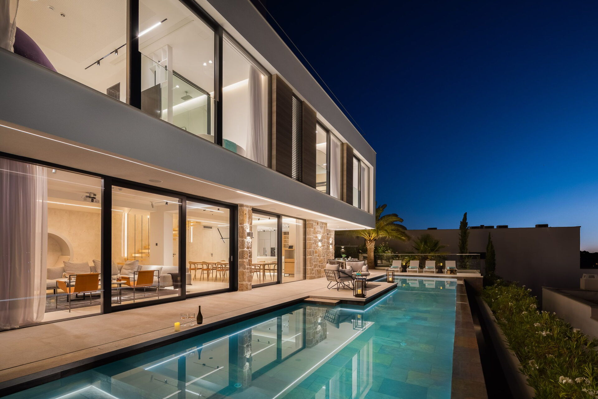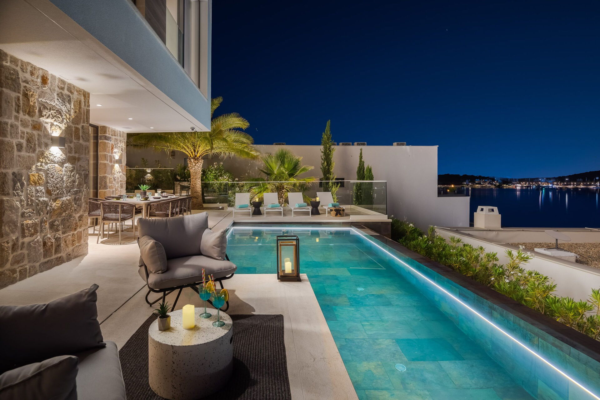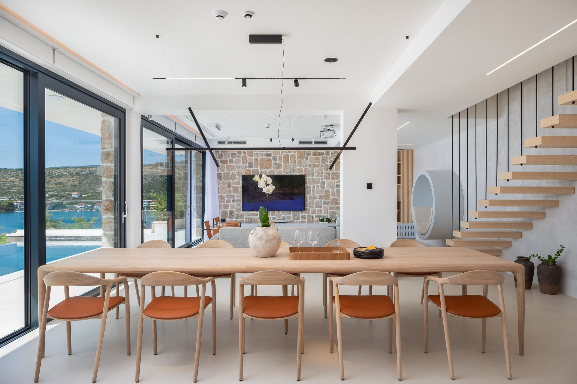 Huset er fordelt på to etager, har en fantastisk udsigt og er udstyret med alle moderne faciliteter. Med sine 3 soveværelser og et lyst, elegant interiør kan feriehuset komfortabelt rumme op til 6/8 personer. Ejendommen tilbyder mange udendørs fællesområder med naturskøn udsigt, hvor gæsterne kan tilbringe tid sammen med familie eller venner. Slap af og nyd et måltid på tagterrassen, som har udendørs køkken, grill og boblebad. Nyd solen i Kroatien ved den opvarmede infinity-pool med havudsigt.