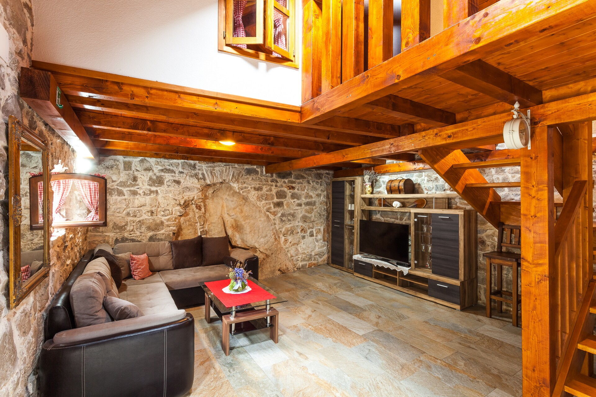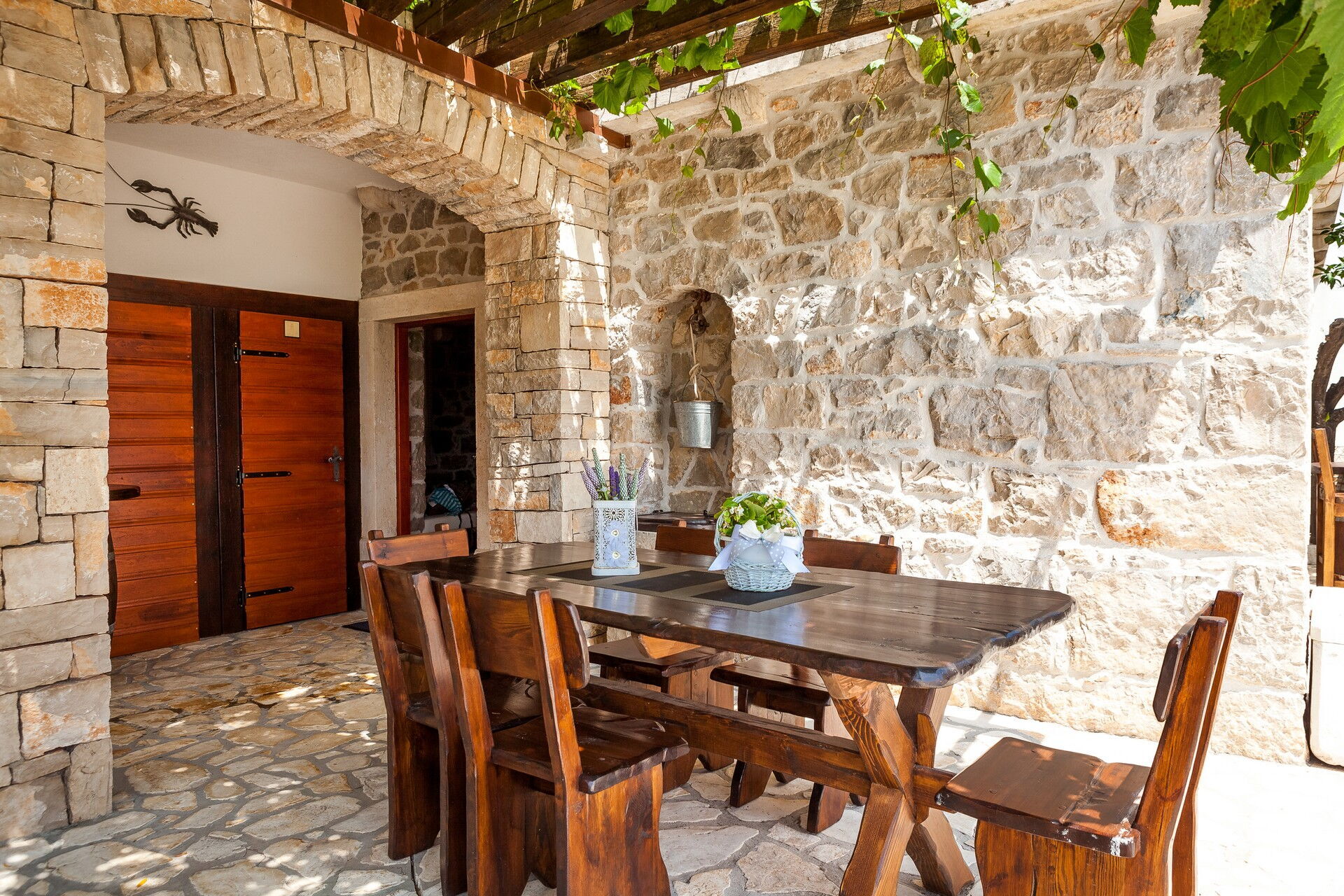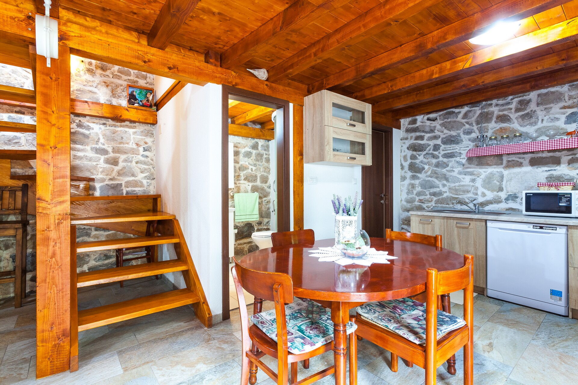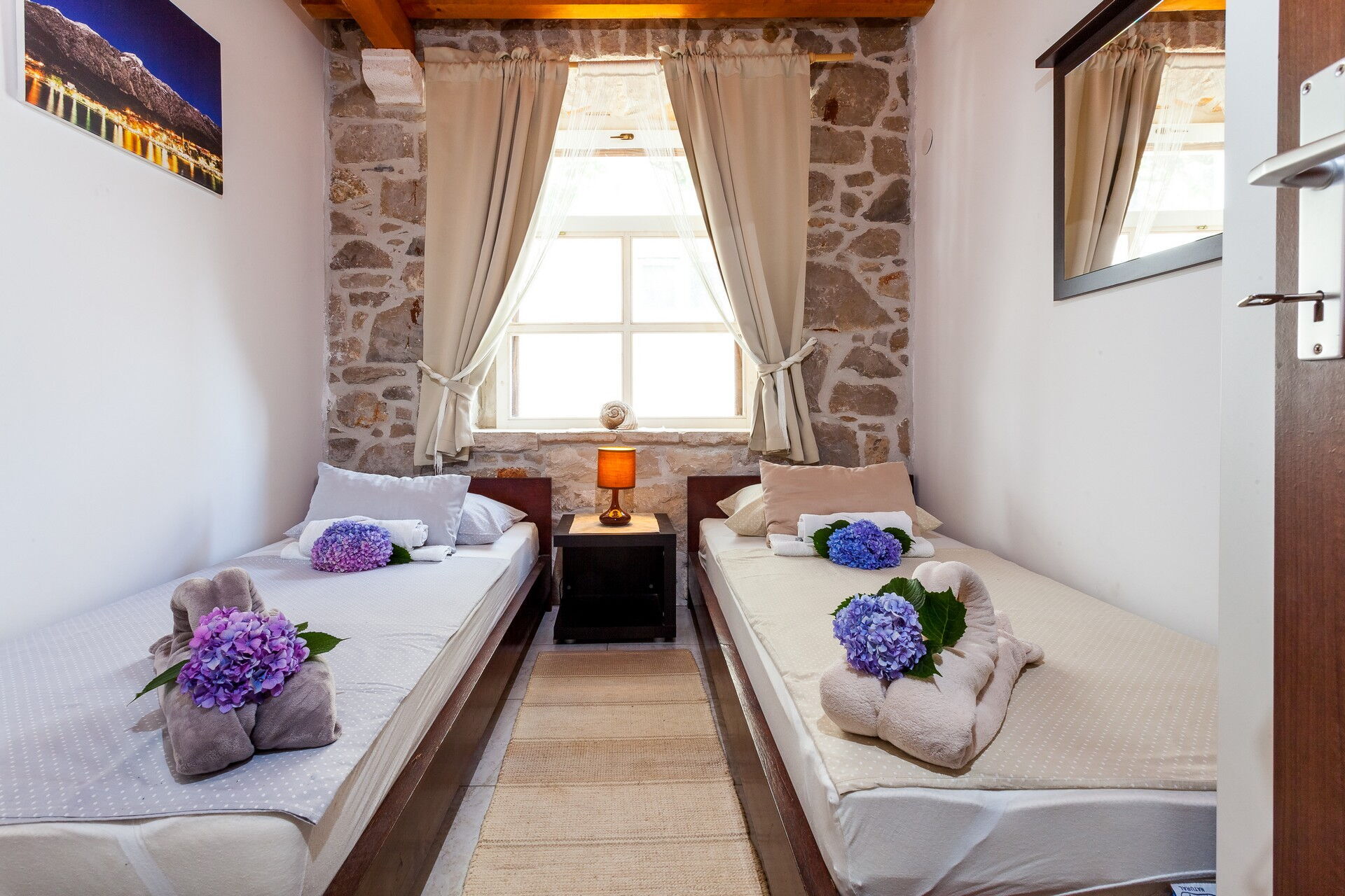 Ferieejendommen består af 3 små lejligheder og kan rumme op til 14 personer. To af de tre lejligheder er gamle dalmatiske huse, der er blevet renoveret i tråd med den oprindelige stil.