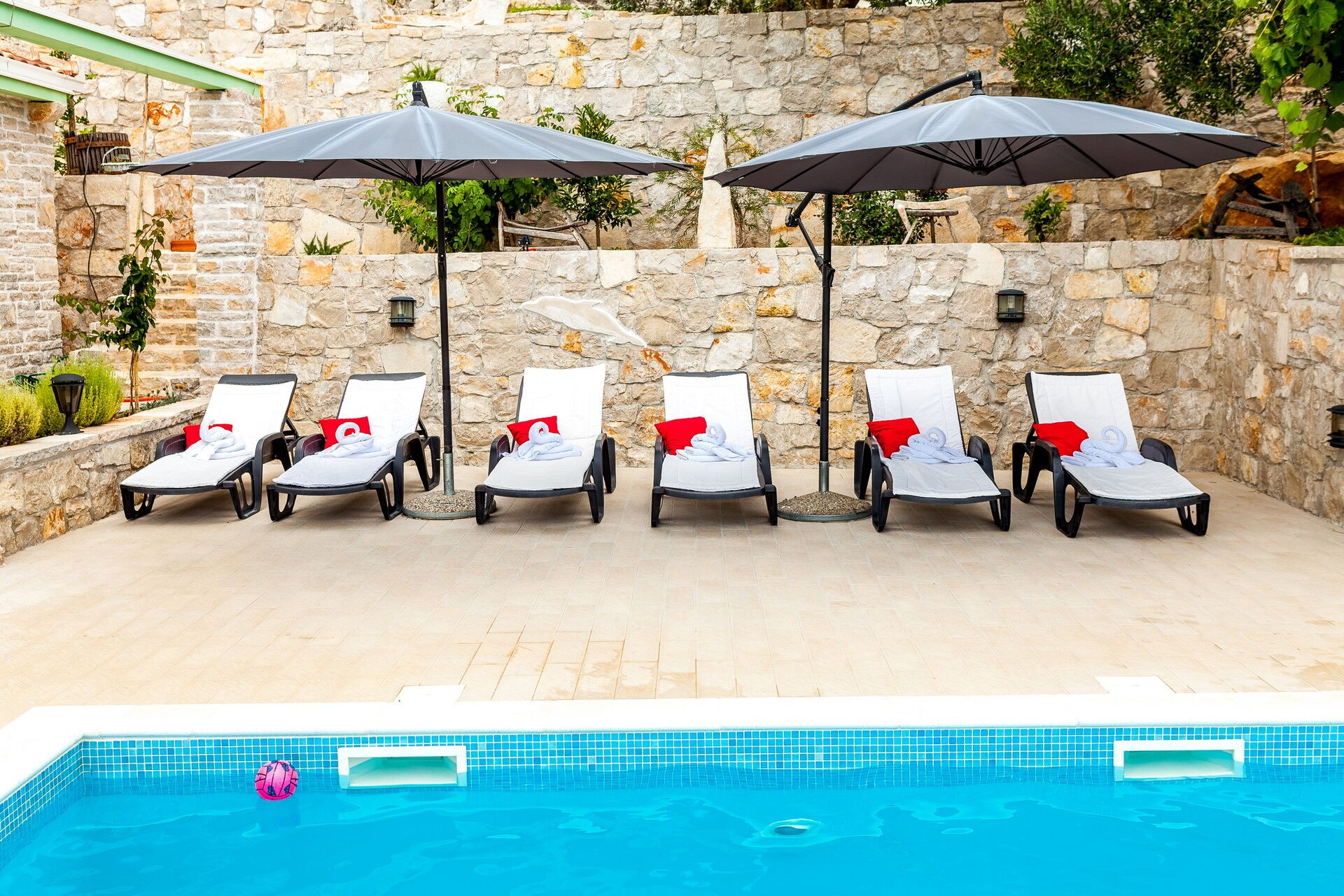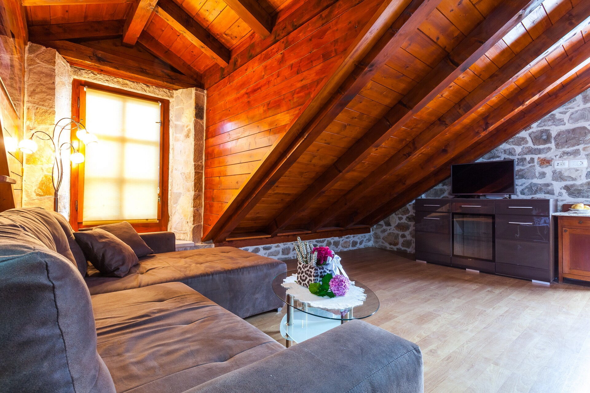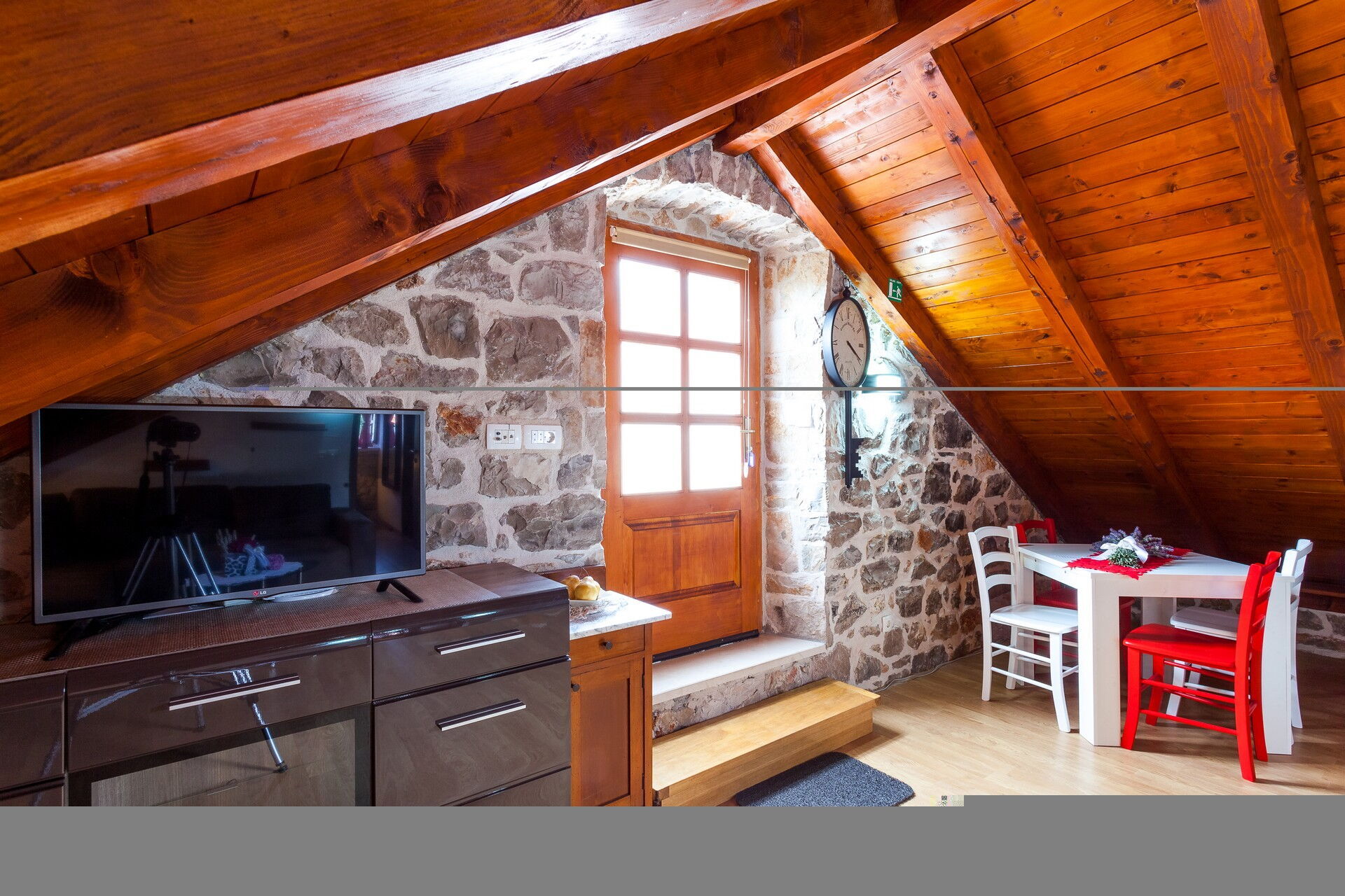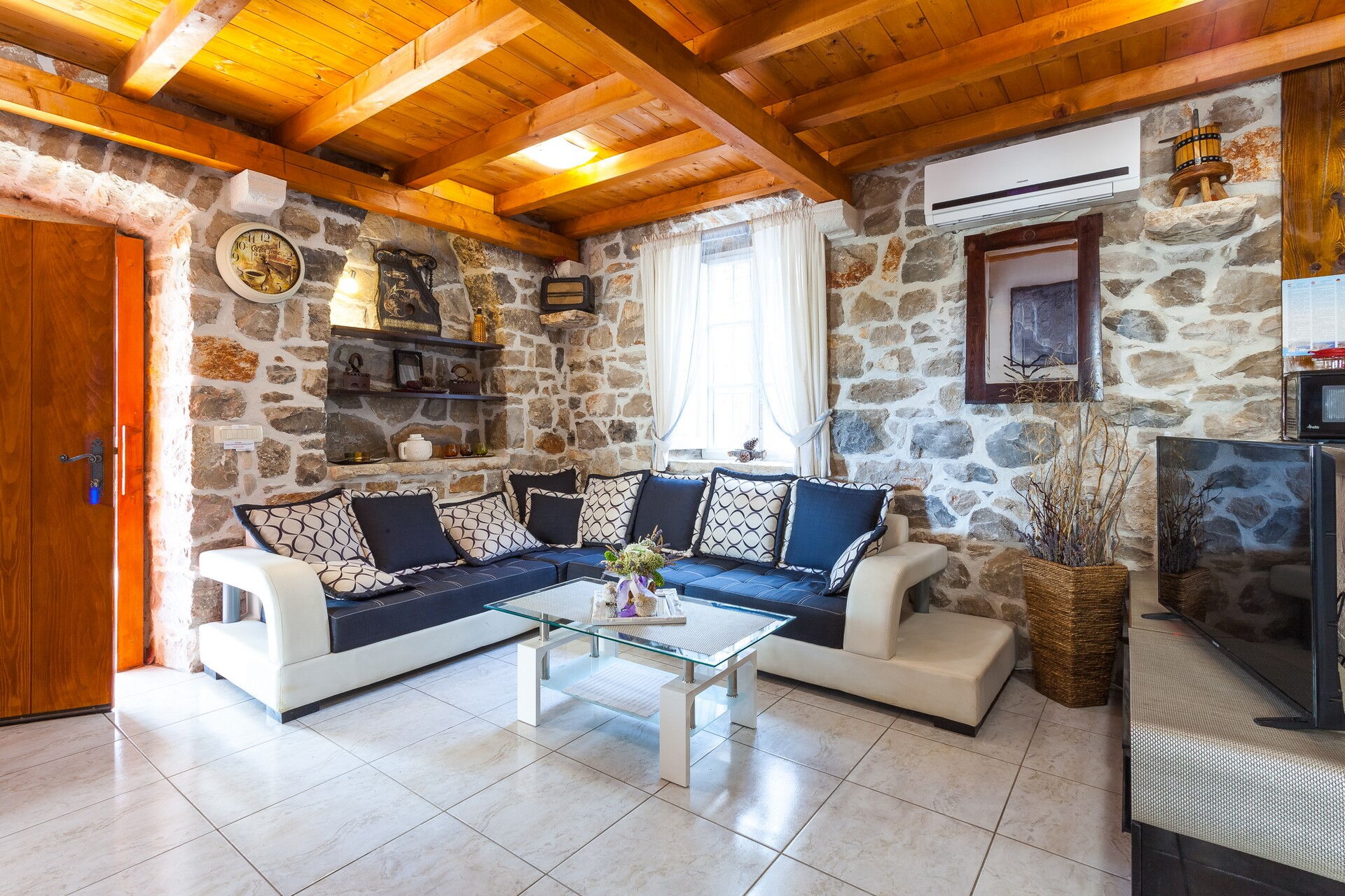Ferieejendommen består af 3 små lejligheder og kan rumme op til 14 personer. To af de tre lejligheder er gamle dalmatiske huse, der er blevet renoveret i tråd med den oprindelige stil.