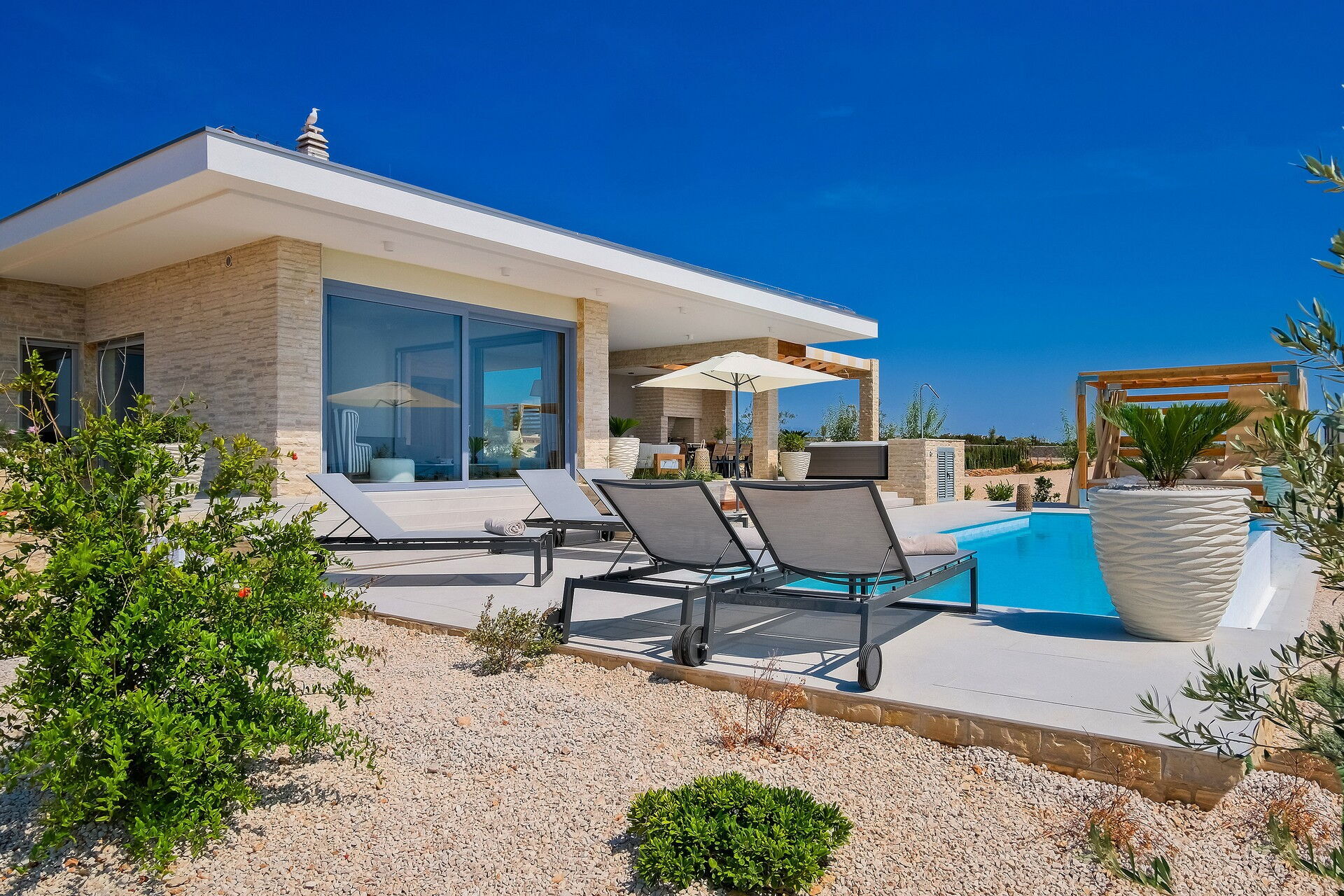 Villa Kelena er et helt nyt og luksuriøst sommerhus på øen Pag i Kroatien.