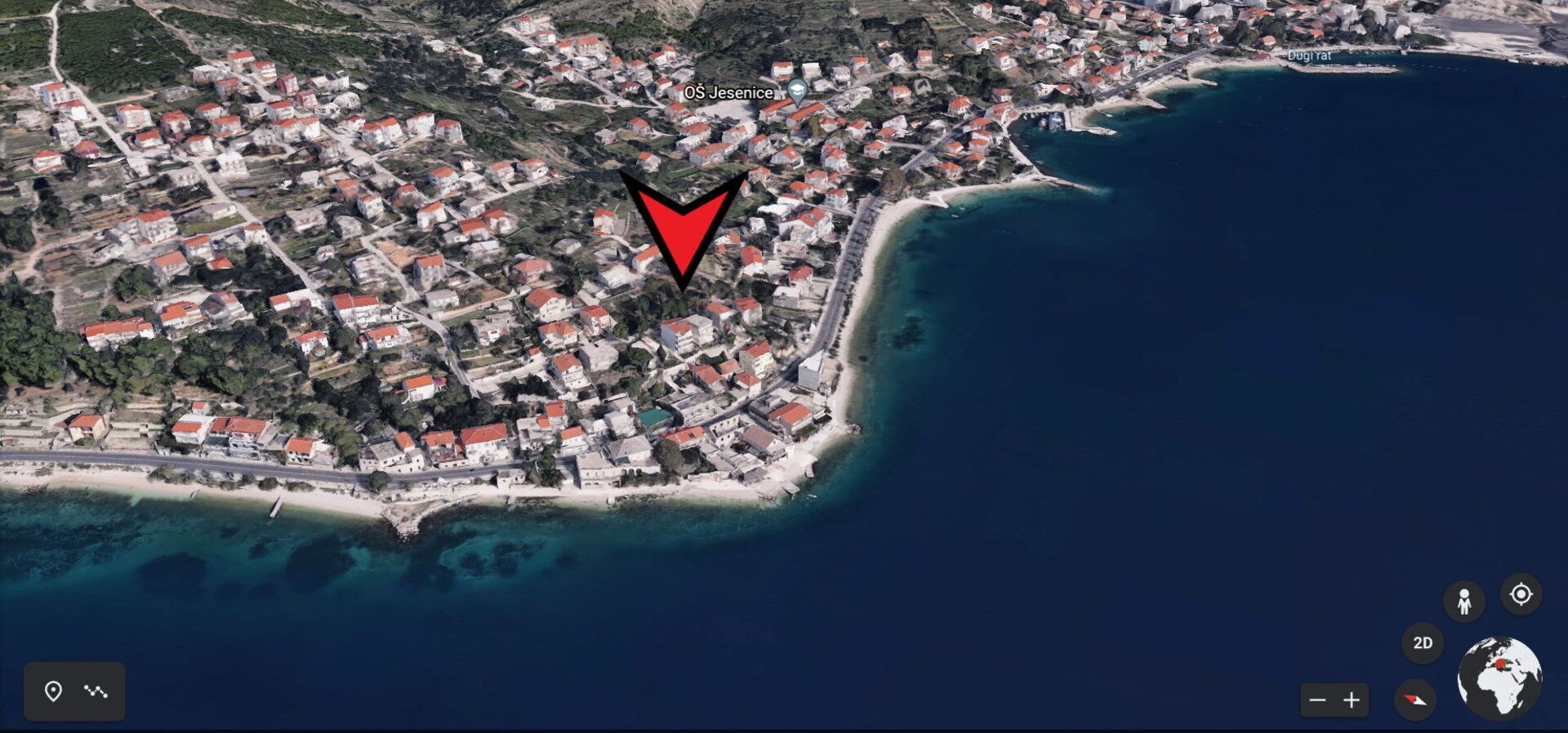 DETALJERET KORT Dugi Rat, Split-Dalmatien, Kroatien