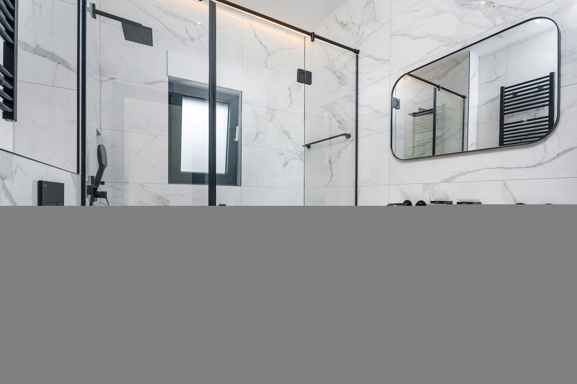 Indgangen fører ind i en rummelig stue og stort køkken, et hovedsoveværelse med eget badeværelse med bruser, et wellnessområde med sauna, et badeværelse med bruser, et billardbord og træningsudstyr.