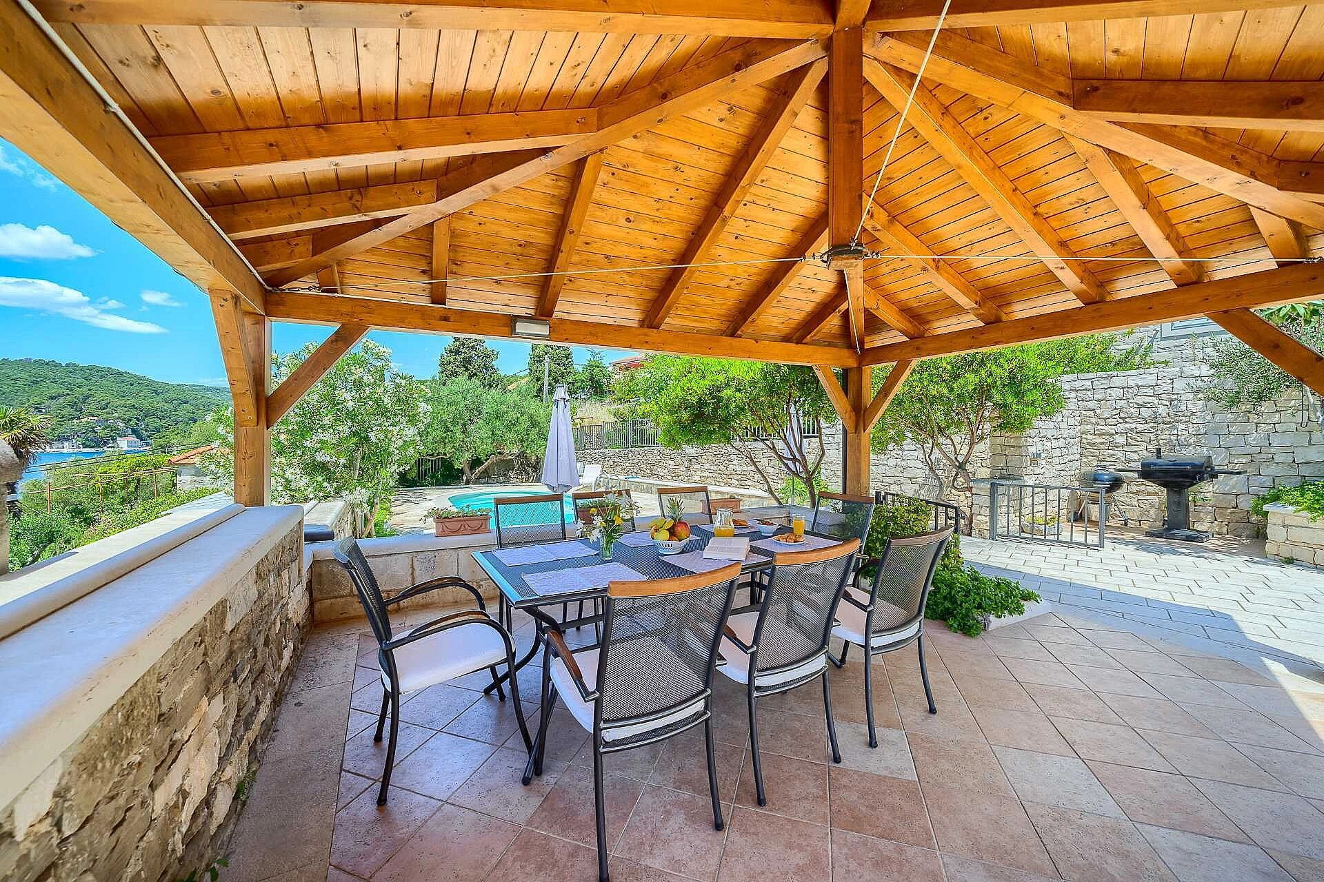 I det udendørs område kan du nyde havudsigten fra den smukke terrasse på Villa Mir Vami. Den private pool med parasoller og liggestole er et godt sted at tilbringe varme sommerdage med familie eller venner. Ellers kan du bruge den nærliggende strand, kun 250 meter fra huset. Der er også en udendørs lounge, grill og pergola-overdækket spiseplads, møbleret med borde og stole for at nyde måltiderne udendørs, sammen med den smukke udsigt og havbrisen.