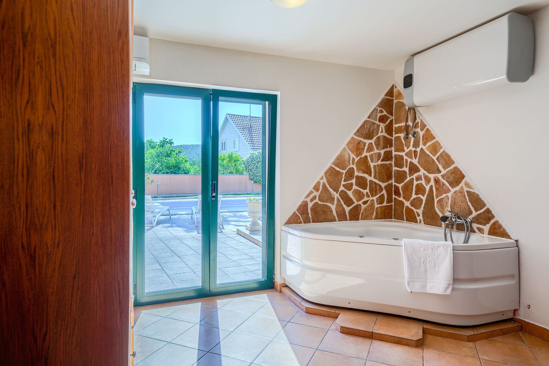 Denne fantastiske villa i Kroatien ligger i et fredeligt beboelsesområde kun 220 meter fra havet og er omgivet af smuk natur.