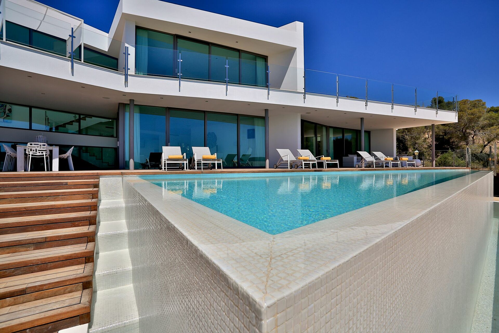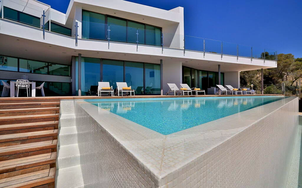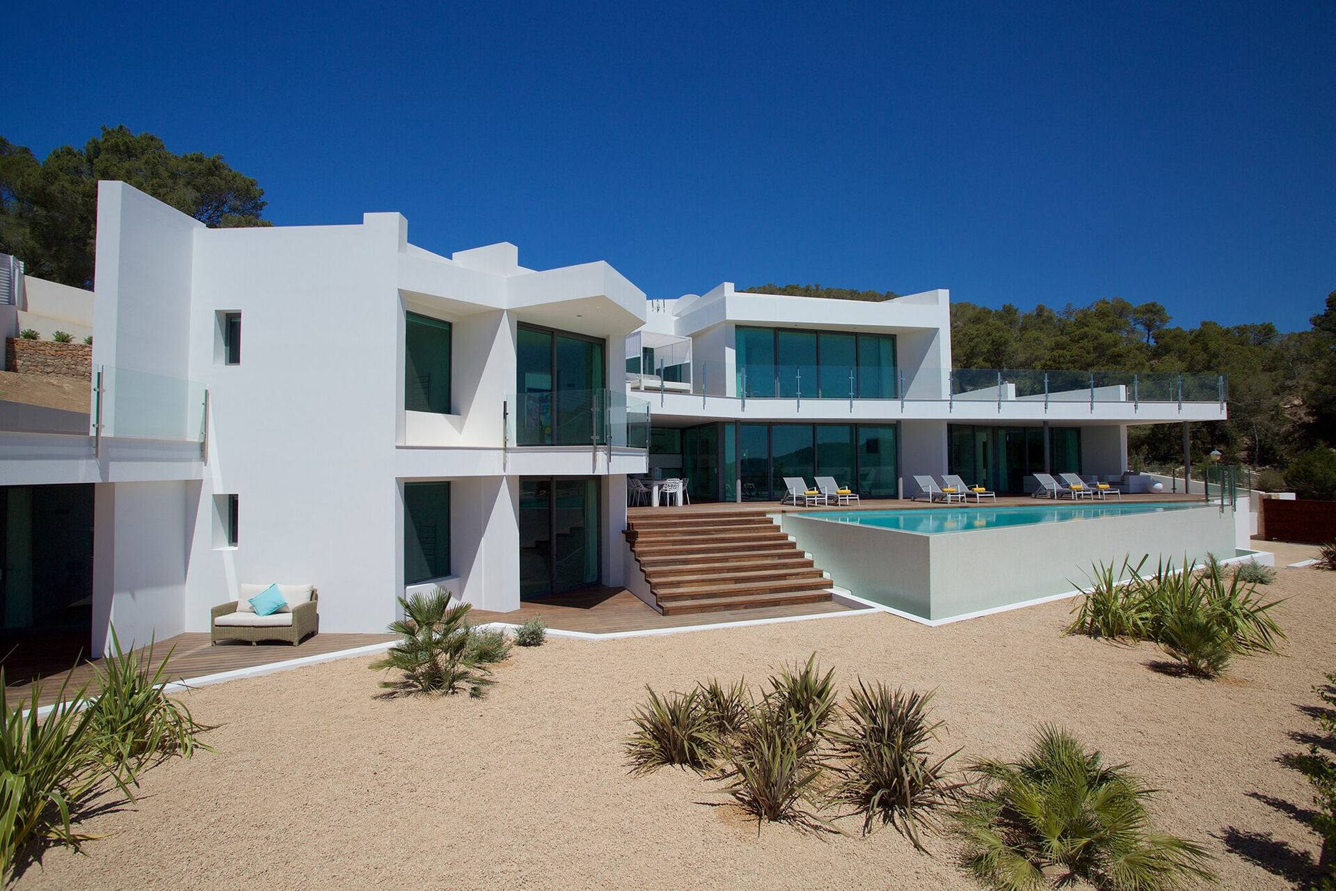 Eksklusivt sommerhus med privat pool nær Es Torrent på øen Ibiza i Spanien.