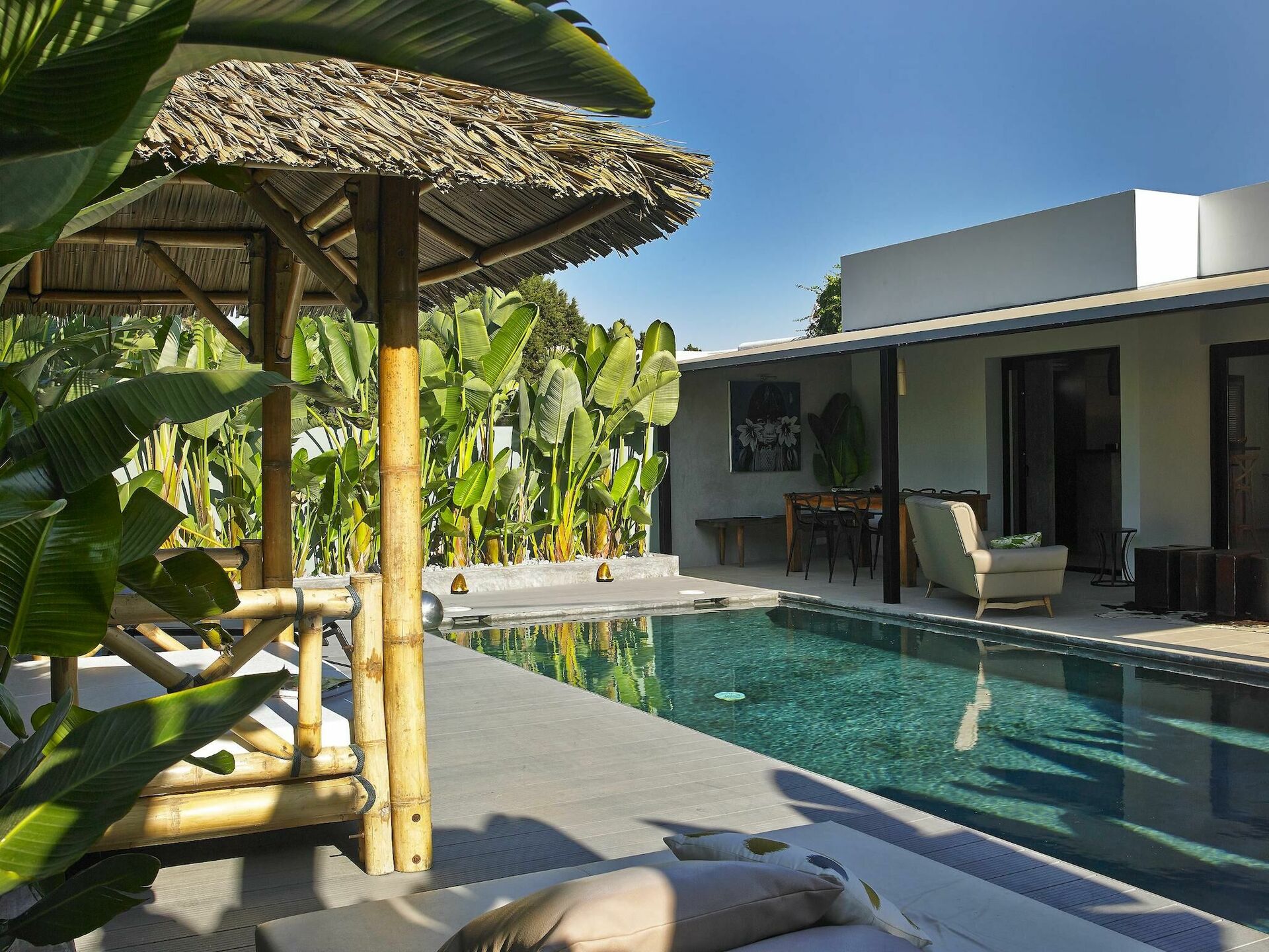 Luksuriøs villa med privat pool i et roligt boligområde på den berømte ø Ibiza i Spanien.