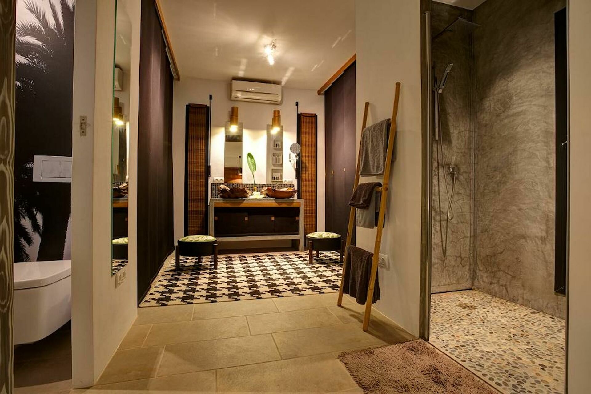 Dette elegant indrettede hus ligger på et niveau og består af to enheder. Villaen har plads til op til 4 personer med 2 soveværelser med eget badeværelse og store fællesarealer. Det tilbyder alle moderne faciliteter for at garantere maksimal komfort.