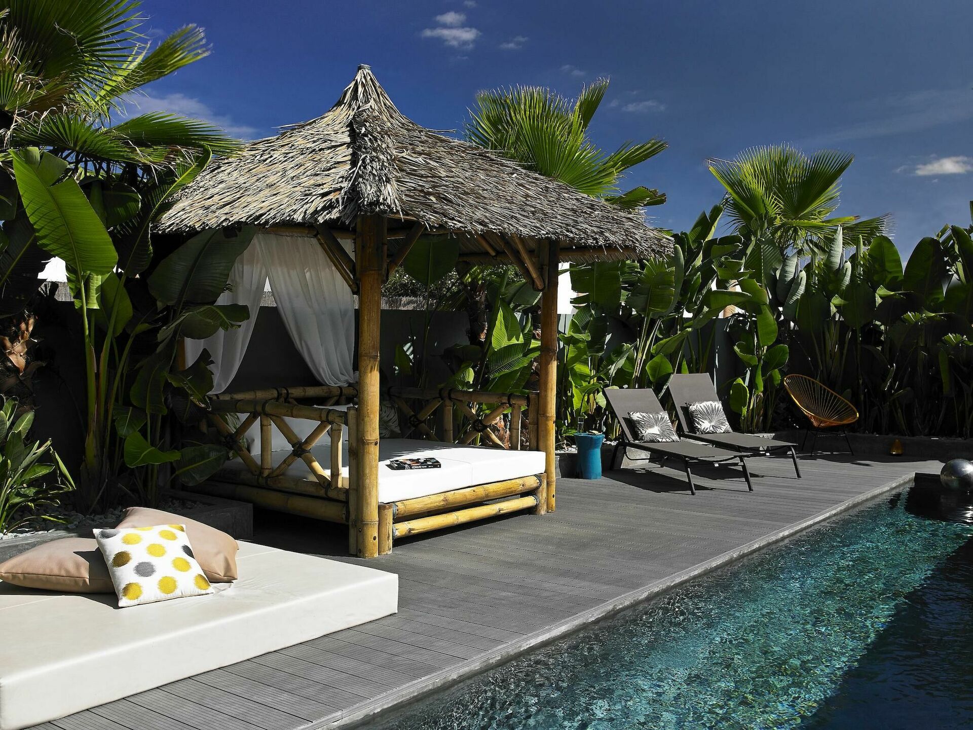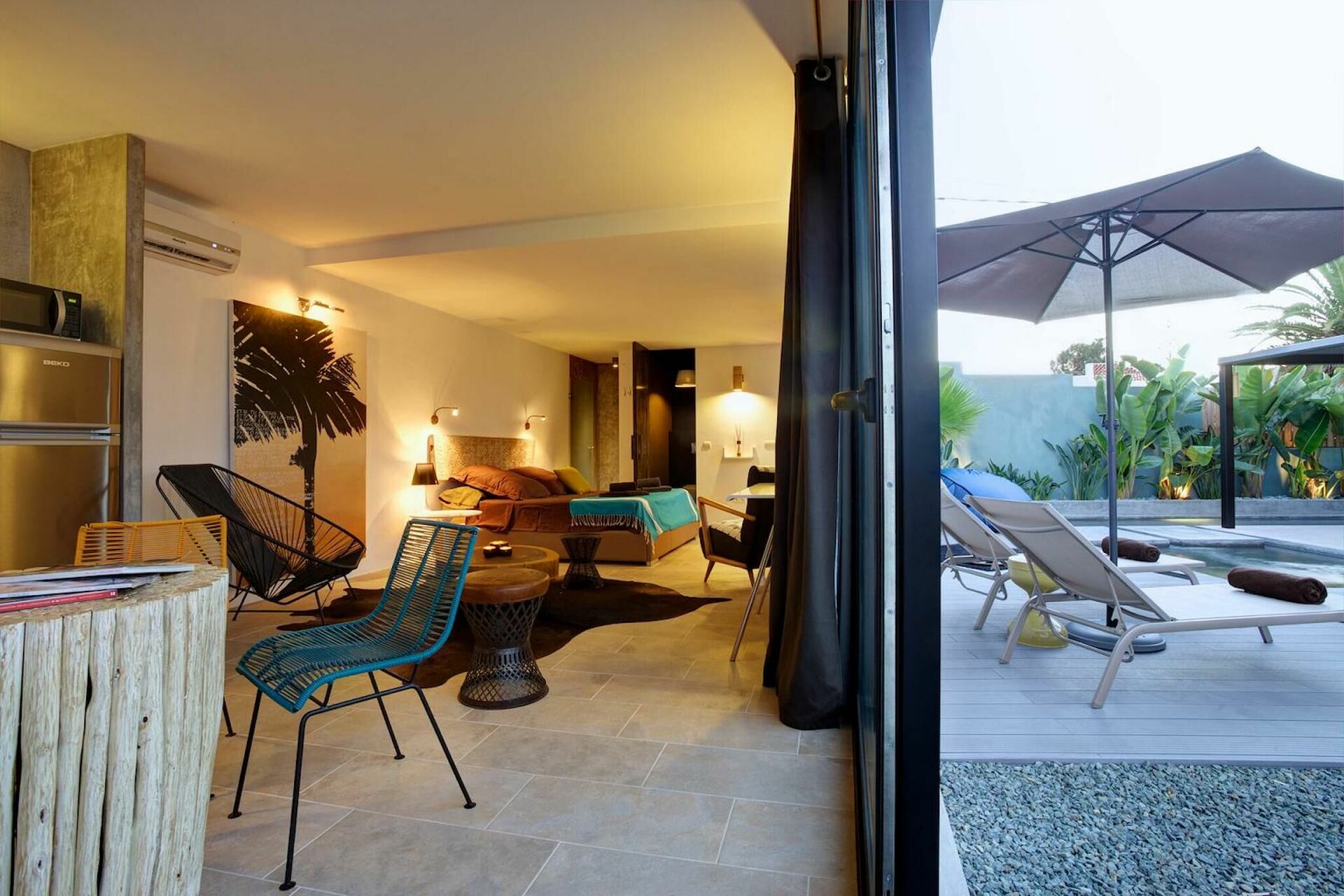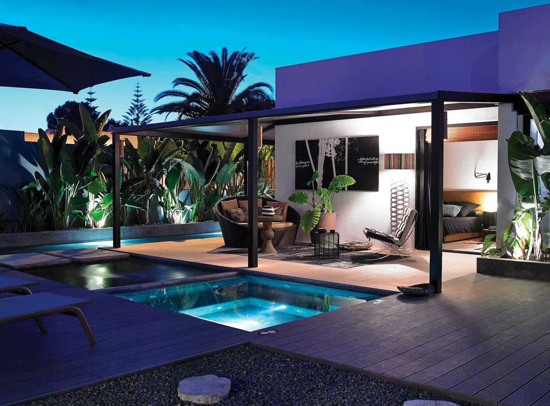 - udendørs lounge og solterrasse