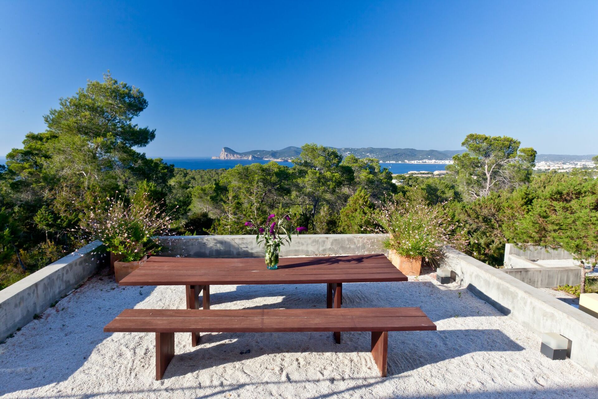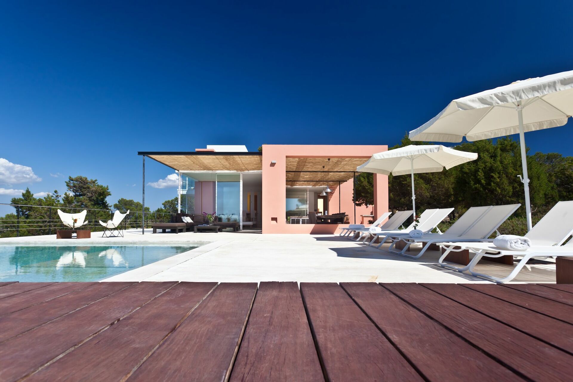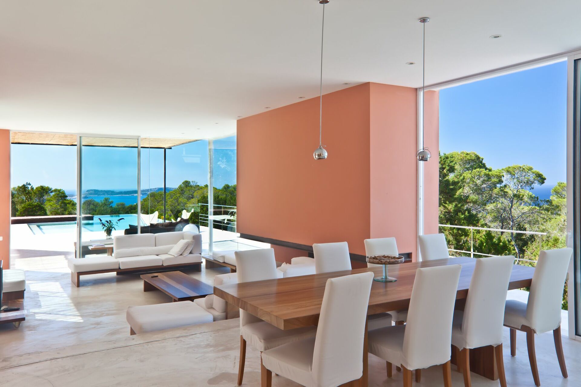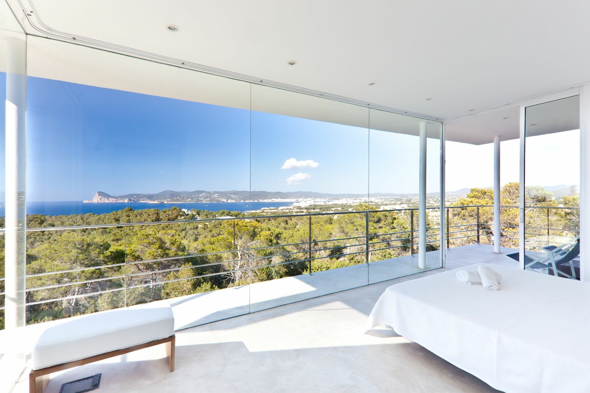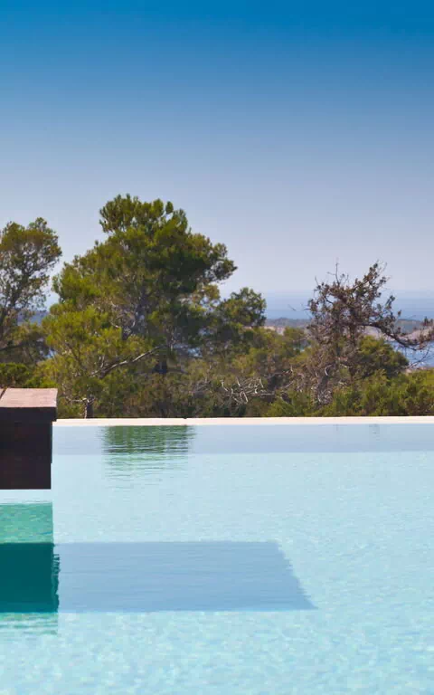 Luksusvilla ved havet på Ibiza i Spanien med flot havudsigt. Huset ligger fredeligt omgivet af 37 kvadratkilometer skov.